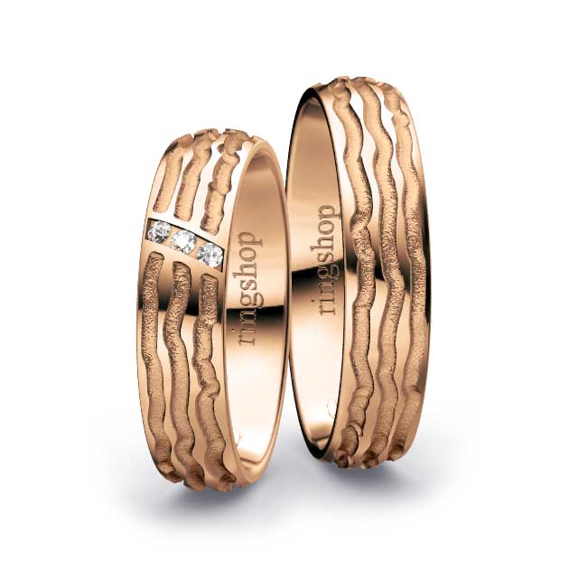 Rotgold: Es handelt sich um eine Legierung aus Feingold, Kupfer und Silber mit Goldanteilen zwischen 333/- und 750/-. Der etwas größere Kupferanteil sorgt für die namensgebende „rote“ Färbung und Härte des Materials. Der elegante und gleichermaßen zeitlose Farbton ist Kupfer ähnlich.