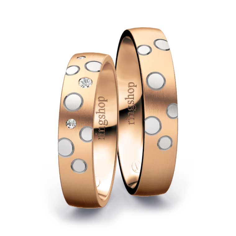 Rotgold: Es handelt sich um eine Legierung aus Feingold, Kupfer und Silber mit Goldanteilen zwischen 333/- und 750/-. Der etwas größere Kupferanteil sorgt für die namensgebende „rote“ Färbung und Härte des Materials. Der elegante und gleichermaßen zeitlose Farbton ist Kupfer ähnlich.
