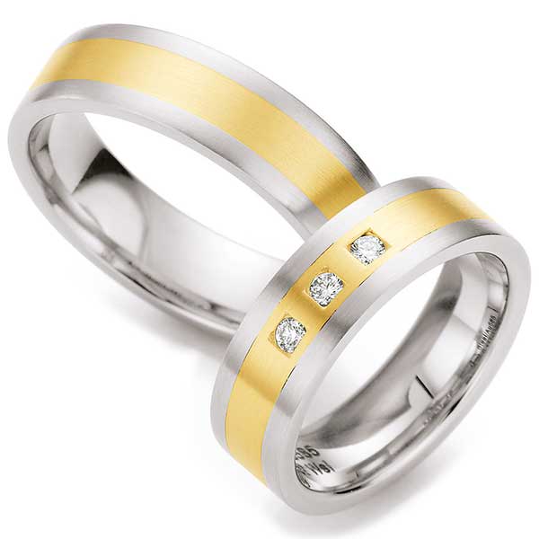 - Bicolor-Ringe: Spannungsreiche Kombination aus Weiß- und Gelbgold.