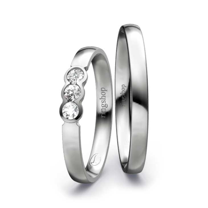 Im Ring sind drei Brillanten gefasst