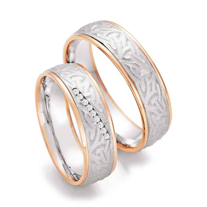 …symbolisieren ein harmonisches Zusammenspiel aus Kontrast und Einheit. Edelmetalle verschmelzen zu einem stilvollen Symbol Ihrer Liebe, das Individualität und Zusammengehörigkeit zugleich verkörpert.
