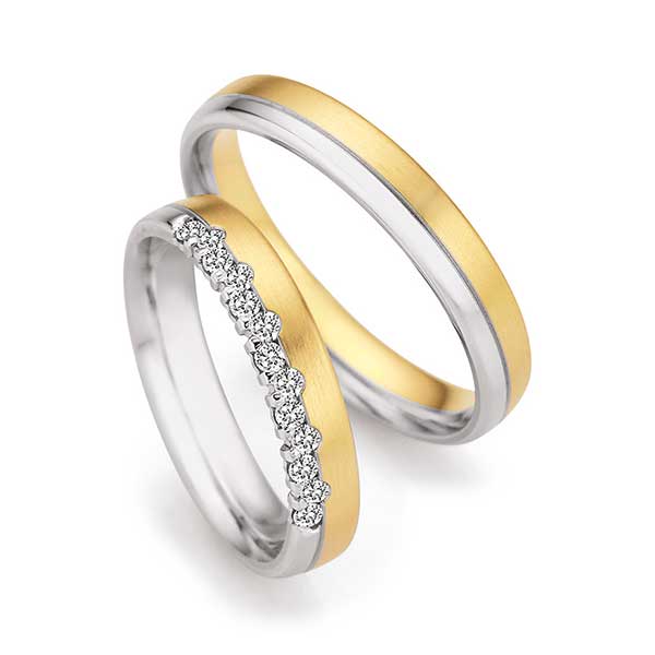 …symbolisieren ein harmonisches Zusammenspiel aus Kontrast und Einheit. Edelmetalle verschmelzen zu einem stilvollen Symbol Ihrer Liebe, das Individualität und Zusammengehörigkeit zugleich verkörpert.
