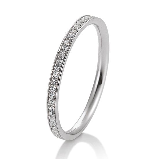 100 % des Ringes sind mit Brillanten ausgefasst – man spracht in diesem Fall von “voll ausgefasst”