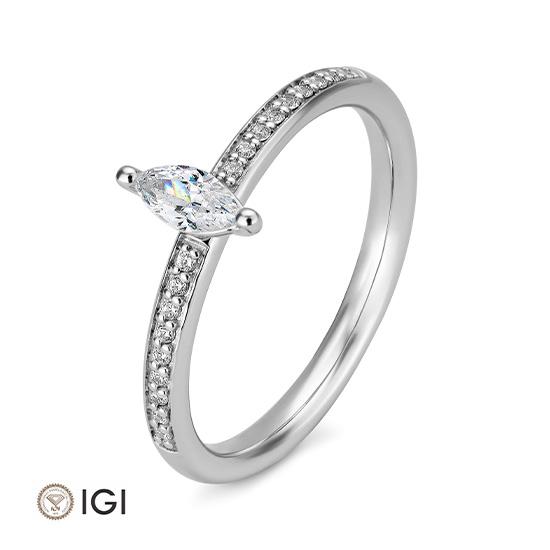 Silber: Seit Jahrhunderten sehr beliebte Materialien zur Herstellung von Schmuck sind Silberlegierungen. Silber überzeugt durch sein strahlend helles Erscheinungsbild und ist aufgrund des günstigeren Preises sehr gefragt – speziell bei Verlobungsringen.
