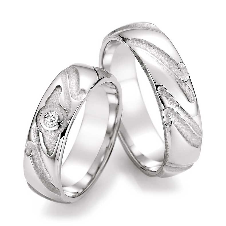Silber: Seit Jahrhunderten sehr beliebte Materialien zur Herstellung von Schmuck sind Silberlegierungen. Silber überzeugt durch sein strahlend helles Erscheinungsbild und ist aufgrund des günstigeren Preises sehr gefragt – speziell bei Verlobungsringen.