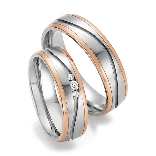 Rotgold: Es handelt sich um eine Legierung aus Feingold, Kupfer und Silber mit Goldanteilen zwischen 333/- und 750/-. Der etwas größere Kupferanteil sorgt für die namensgebende „rote“ Färbung und Härte des Materials. Der elegante und gleichermaßen zeitlose Farbton ist Kupfer ähnlich.