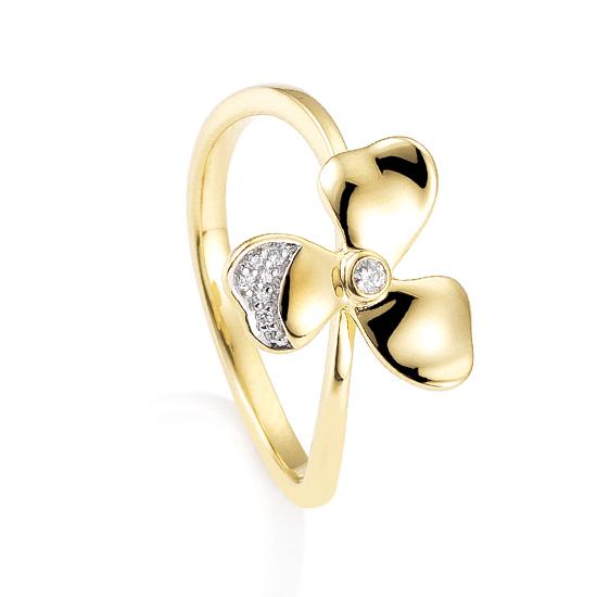 Im Ring sind drei Brillanten gefasst