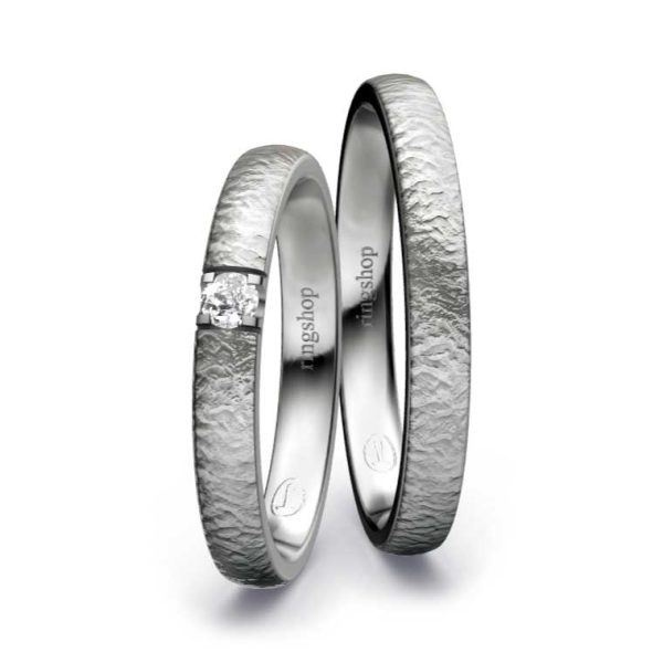 Graugold: In 750/- besteht Graugold aus 75 % reinem Gold. Erhältlch ist es auch mit einem Feingehalt von 585/-, also einem Goldanteil von 58,5 %. Ist ein noch dunkleres Erscheinungsbild gewünscht, kann Graugold zusätzlich rutheniert werden.