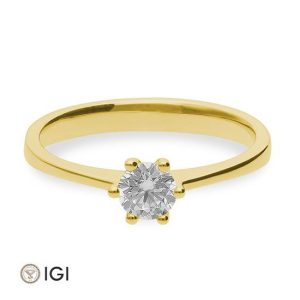 Gelbgold: Die “klassische”, elegante und zeitlose Goldfarbe mit Feingehalt 333/-, 375/-, 585/- und 750/- ist eine dem Feingold sehr ähnelnde gelbe Goldlegierung, die vorwiegend mit Silber und Kupfer legiert ist. Mit einem Feingehalt von 585/- (14 Karat) und 750/- (18 Karat) spricht man von “Echtschmuck”.