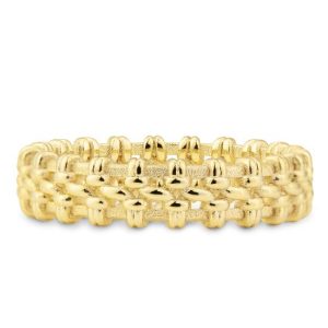 Gelbgold: Die “klassische”, elegante und zeitlose Goldfarbe mit Feingehalt 333/-, 375/-, 585/- und 750/- ist eine dem Feingold sehr ähnelnde gelbe Goldlegierung, die vorwiegend mit Silber und Kupfer legiert ist. Mit einem Feingehalt von 585/- (14 Karat) und 750/- (18 Karat) spricht man von “Echtschmuck”.
