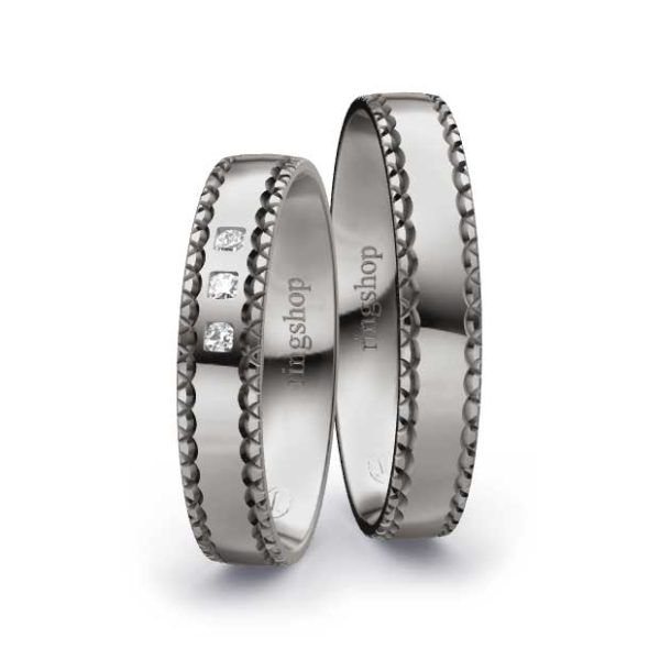 Tantal: Dieses Metall zählt zu den “Seltenen Erden”. Es wird für Schmuck vorwiegend als reines Tantal (999/-) oder als Legierung mit 10 % Wolframanteil (900/-) verarbeitet. Es ähnelt betreffend des Farbtons dem ruthenierten Graugold mit dem Vorteil, dass es nicht beschichtet ist und somit den Farbton nicht verändert.