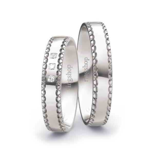 Silber: Seit Jahrhunderten sehr beliebte Materialien zur Herstellung von Schmuck sind Silberlegierungen. Silber überzeugt durch sein strahlend helles Erscheinungsbild und ist aufgrund des günstigeren Preises sehr gefragt – speziell bei Verlobungsringen.