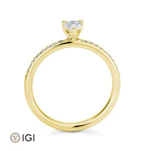 Gelbgold: Die “klassische”, elegante und zeitlose Goldfarbe mit Feingehalt 333/-, 375/-, 585/- und 750/- ist eine dem Feingold sehr ähnelnde gelbe Goldlegierung, die vorwiegend mit Silber und Kupfer legiert ist. Mit einem Feingehalt von 585/- (14 Karat) und 750/- (18 Karat) spricht man von “Echtschmuck”.