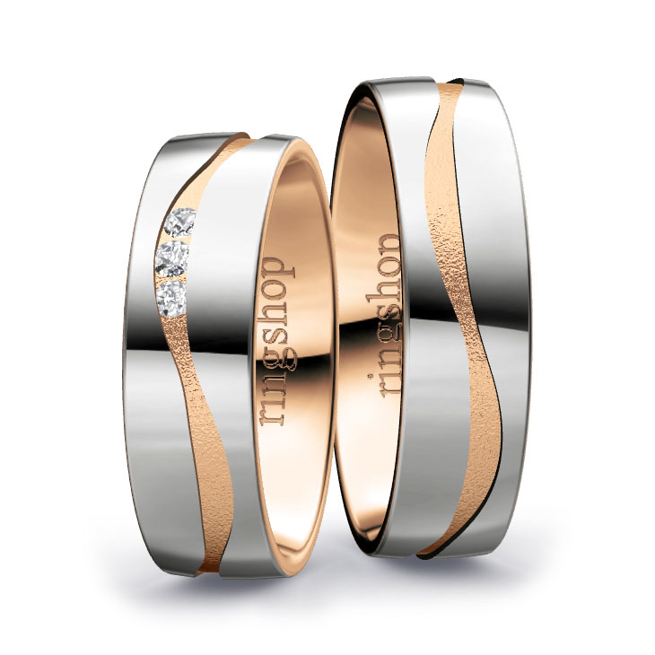 Rotgold: Es handelt sich um eine Legierung aus Feingold, Kupfer und Silber mit Goldanteilen zwischen 333/- und 750/-. Der etwas größere Kupferanteil sorgt für die namensgebende „rote“ Färbung und Härte des Materials. Der elegante und gleichermaßen zeitlose Farbton ist Kupfer ähnlich.