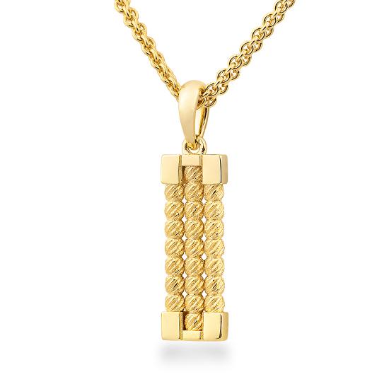 Gold 585/- ist neben 750/- die häufigste Goldlegierung. Der Goldanteil ist hoch und das Schmuckstück somit hochwertig. Die Legierung zählt per Gesetz zu Echtschmuck.