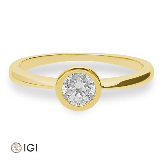 Gelbgold: Die “klassische”, elegante und zeitlose Goldfarbe mit Feingehalt 333/-, 375/-, 585/- und 750/- ist eine dem Feingold sehr ähnelnde gelbe Goldlegierung, die vorwiegend mit Silber und Kupfer legiert ist. Mit einem Feingehalt von 585/- (14 Karat) und 750/- (18 Karat) spricht man von “Echtschmuck”.