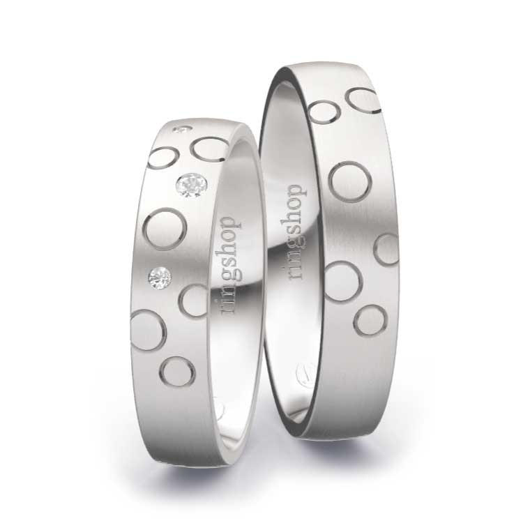 Palladium: Das mit Platin verwandte Metall Palladium erhält mit einem Feingehalt von 950/- eine besonders helle und strahlende Oberfläche. Mit einem Feingehalt von 500/- ist es deutlich dunkler wie etwa Graugold.
