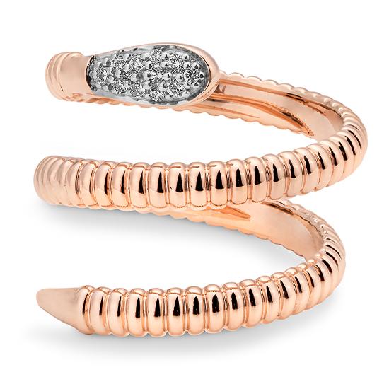 Rotgold: Es handelt sich um eine Legierung aus Feingold, Kupfer und Silber mit Goldanteilen zwischen 333/- und 750/-. Der etwas größere Kupferanteil sorgt für die namensgebende „rote“ Färbung und Härte des Materials. Der elegante und gleichermaßen zeitlose Farbton ist Kupfer ähnlich.