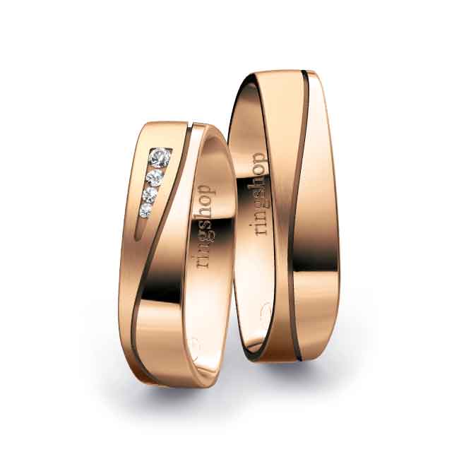Rotgold: Es handelt sich um eine Legierung aus Feingold, Kupfer und Silber mit Goldanteilen zwischen 333/- und 750/-. Der etwas größere Kupferanteil sorgt für die namensgebende „rote“ Färbung und Härte des Materials. Der elegante und gleichermaßen zeitlose Farbton ist Kupfer ähnlich.