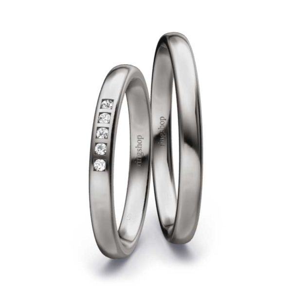 Graugold: In 750/- besteht Graugold aus 75 % reinem Gold. Erhältlch ist es auch mit einem Feingehalt von 585/-, also einem Goldanteil von 58,5 %. Ist ein noch dunkleres Erscheinungsbild gewünscht, kann Graugold zusätzlich rutheniert werden.