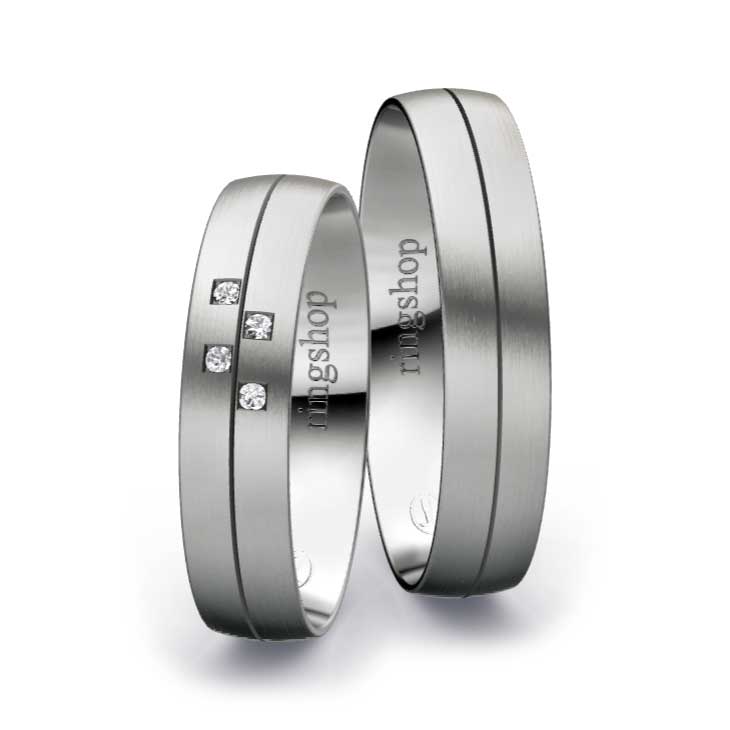 Palladium: Das mit Platin verwandte Metall Palladium erhält mit einem Feingehalt von 950/- eine besonders helle und strahlende Oberfläche. Mit einem Feingehalt von 500/- ist es deutlich dunkler wie etwa Graugold.