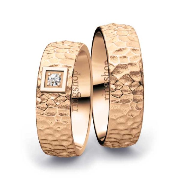Rotgold: Es handelt sich um eine Legierung aus Feingold, Kupfer und Silber mit Goldanteilen zwischen 333/- und 750/-. Der etwas größere Kupferanteil sorgt für die namensgebende „rote“ Färbung und Härte des Materials. Der elegante und gleichermaßen zeitlose Farbton ist Kupfer ähnlich.