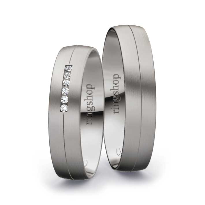 Palladium: Das mit Platin verwandte Metall Palladium erhält mit einem Feingehalt von 950/- eine besonders helle und strahlende Oberfläche. Mit einem Feingehalt von 500/- ist es deutlich dunkler wie etwa Graugold.