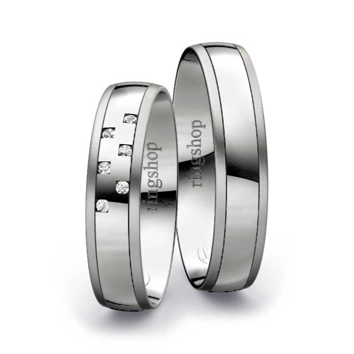 Palladium: Das mit Platin verwandte Metall Palladium erhält mit einem Feingehalt von 950/- eine besonders helle und strahlende Oberfläche. Mit einem Feingehalt von 500/- ist es deutlich dunkler wie etwa Graugold.