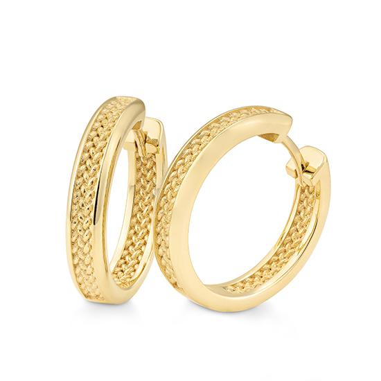 Gelbgold: Die “klassische”, elegante und zeitlose Goldfarbe mit Feingehalt 333/-, 375/-, 585/- und 750/- ist eine dem Feingold sehr ähnelnde gelbe Goldlegierung, die vorwiegend mit Silber und Kupfer legiert ist. Mit einem Feingehalt von 585/- (14 Karat) und 750/- (18 Karat) spricht man von “Echtschmuck”.