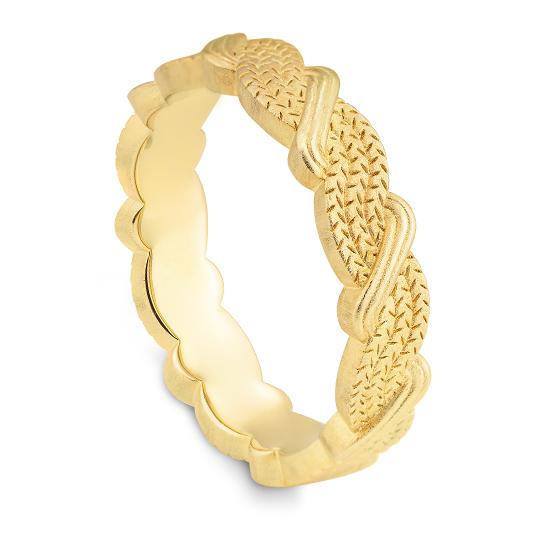 Gelbgold: Die “klassische”, elegante und zeitlose Goldfarbe mit Feingehalt 333/-, 375/-, 585/- und 750/- ist eine dem Feingold sehr ähnelnde gelbe Goldlegierung, die vorwiegend mit Silber und Kupfer legiert ist. Mit einem Feingehalt von 585/- (14 Karat) und 750/- (18 Karat) spricht man von “Echtschmuck”.