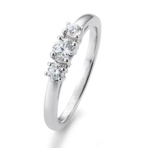 Lisa Elena verbindet drei Zirkonia-Steine zu einem klassischen Dreisteinring – ideal, wenn der Verlobungsring symbolisch und zugleich modern wirken soll.