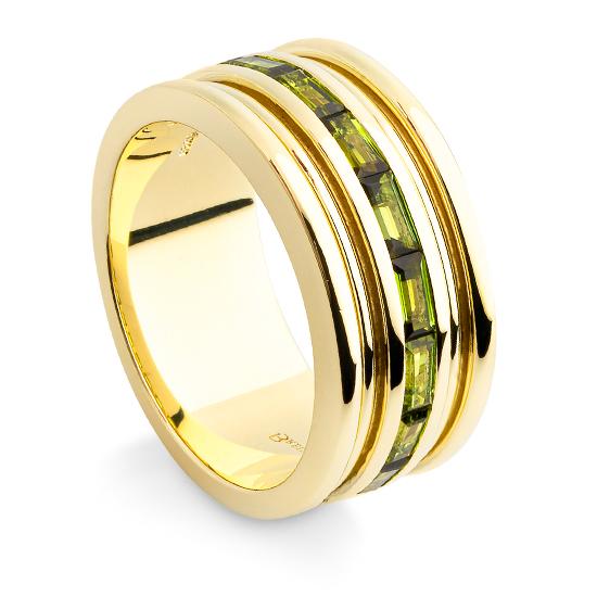 Gelbgold: Die “klassische”, elegante und zeitlose Goldfarbe mit Feingehalt 333/-, 375/-, 585/- und 750/- ist eine dem Feingold sehr ähnelnde gelbe Goldlegierung, die vorwiegend mit Silber und Kupfer legiert ist. Mit einem Feingehalt von 585/- (14 Karat) und 750/- (18 Karat) spricht man von “Echtschmuck”.